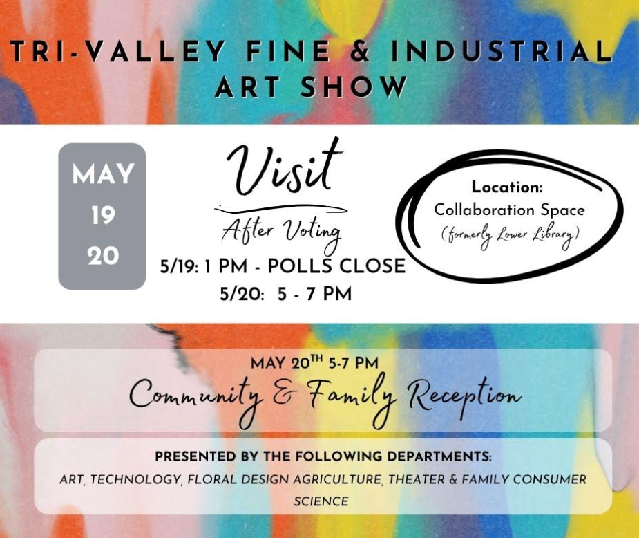We are excited to invite you to the annual Tri-Valley Fine & Industrial Art Show! Come explore the incredible creativity and hard work of our students across multiple departments.